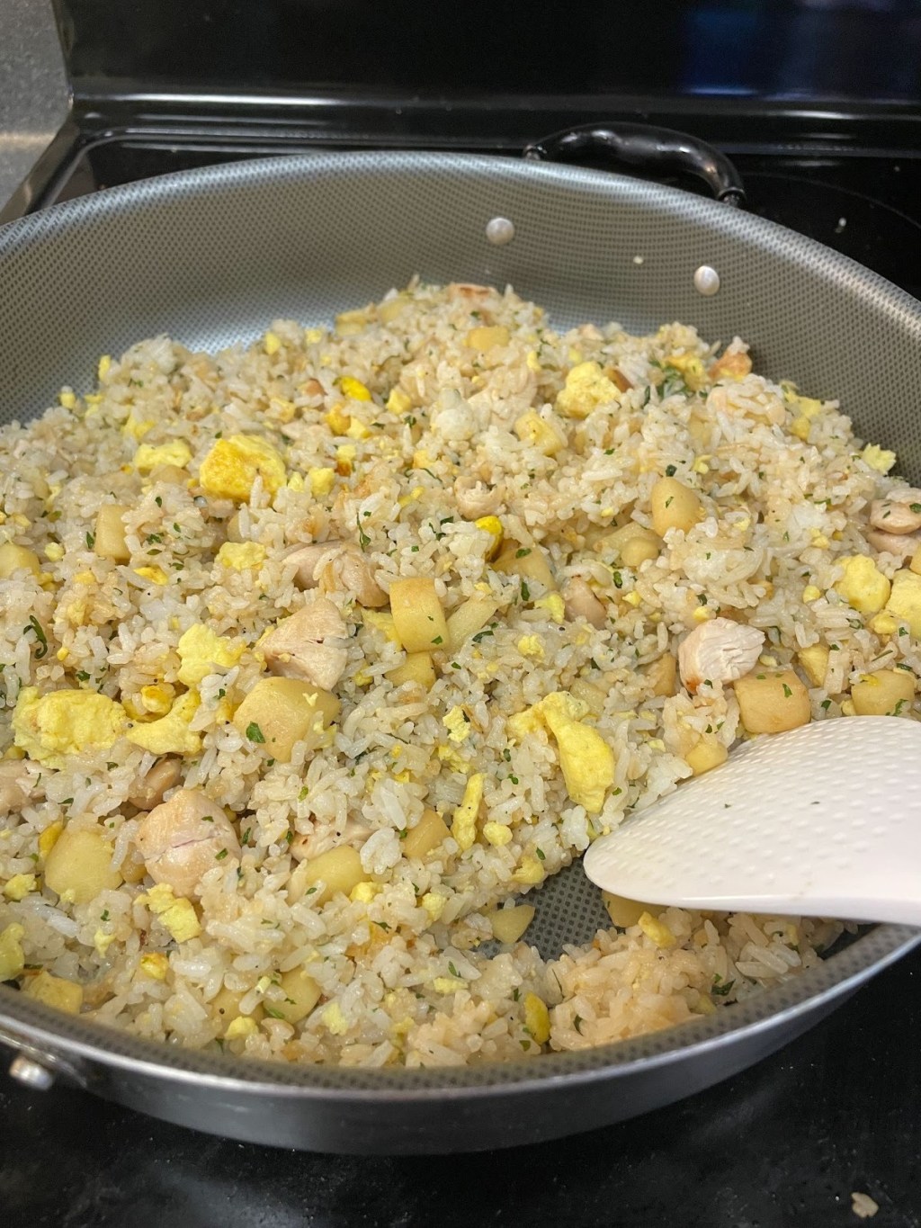 My answer to that is NO. The world is so big, there must be more recipes and food that haven’t been discovered. That is why I decided to be a pioneer (definitely not ‘cause I was bored). I decided to try something new. I decided to make apple fried rice. It might sound weird at first, but if you really think about it pineapple fried rice is a thing and so is apple risotto. Both of those foods are pretty good. So who’s to say that apple fried rice wouldn’t work? You really wouldn’t know unless you tried.